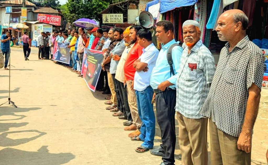 শনিবার (৪ অক্টোবর) শহরের কাচারী বাজার এলাকায় ডিবি রোডে মানববন্ধন থেকে এই আল্টিমেটাম দেওয়া হয়। নারী সংবাদকর্মী দিশা আক্তারকে হেনস্থা এবং খায়রুল ইসলাম, মিলন খন্দকার ও দিশা আক্তারের বিরুদ্ধে মিথ্যা মামলার প্রতিবাদে মানববন্ধনের আয়োজন করে গাইবান্ধা প্রেসক্লাব। গাইবান্ধা প্রেসক্লাবের সভাপতি অমিতাভ দাশ হিমুনের সভাপতিত্বে যুগ্ম সম্পাদক জাভেদ হোসেনের সঞ্চালনায় মানববন্ধনে বক্তব্য দেন,সাধারণ সম্পাদক ইদ্রিসউজ্জামান মোনা,সহ-সভাপতি রেজাউন্নবী রাজু ও খালেদ হোসেন, যুগ্ম সম্পাদক মিলন খন্দকার, সাংগঠনিক সম্পাদক রজতকান্তি বর্মন, নির্বাহী সদস্য লালচান বিশ্বাস সুমন, জোবায়দুর রহমান জুয়েল, সুন্দরগঞ্জ প্রেসক্লাবের সাবেক সাধারণ সম্পাদক শাহ মো. রেদওয়ানুর রহমান, পলাশবাড়ি প্রেসক্লাবের সাবেক সাধারণ সম্পাদক সিরাজুল ইসলাম রতন, সাংবাদিক রবিউল ইসলাম, মেহেদী বাবু, সোহরাব হোসেন শিরল প্রমুখ।